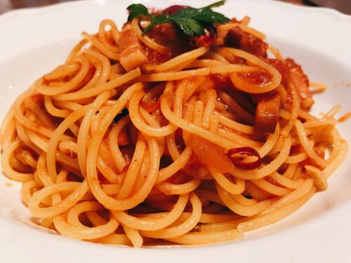 お昼に伺いいました。 野上町のジョリパさん 外観 店内は賑わっていて 中待ちがあります。 10分ほどして席に案内してもらえました。 メニュー ◆アラビアータ 730円(税抜) を、オーダー 激辛ビアータと悩みました。 次回は激辛で 卓上 席が厨房に近い…