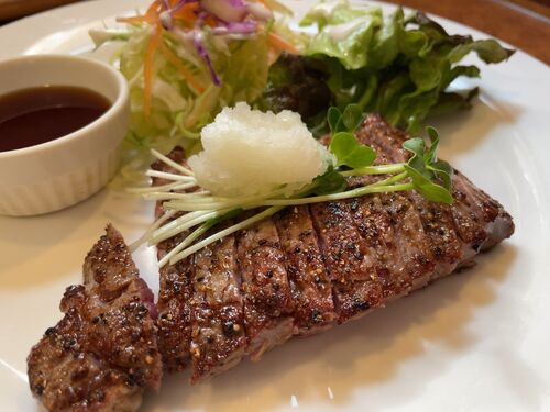 お昼に伺いました。 三次市十日市東のタキヤさん 外観 ステーキののぼりを眺めて入店します。 メニュー 品揃えは豊富です。 このメニューの他に洋食メインでありながらラーメンやパスタもあります。 ◆ステーキランチ 1,060円(税込) を、オーダー 卓上 …