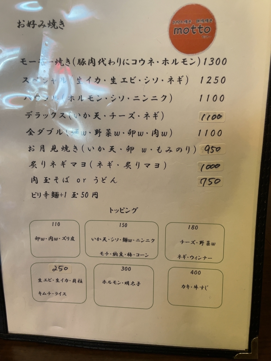 広島市『お好み焼き・鉄板焼き モットー』お好み焼き 肉玉そば