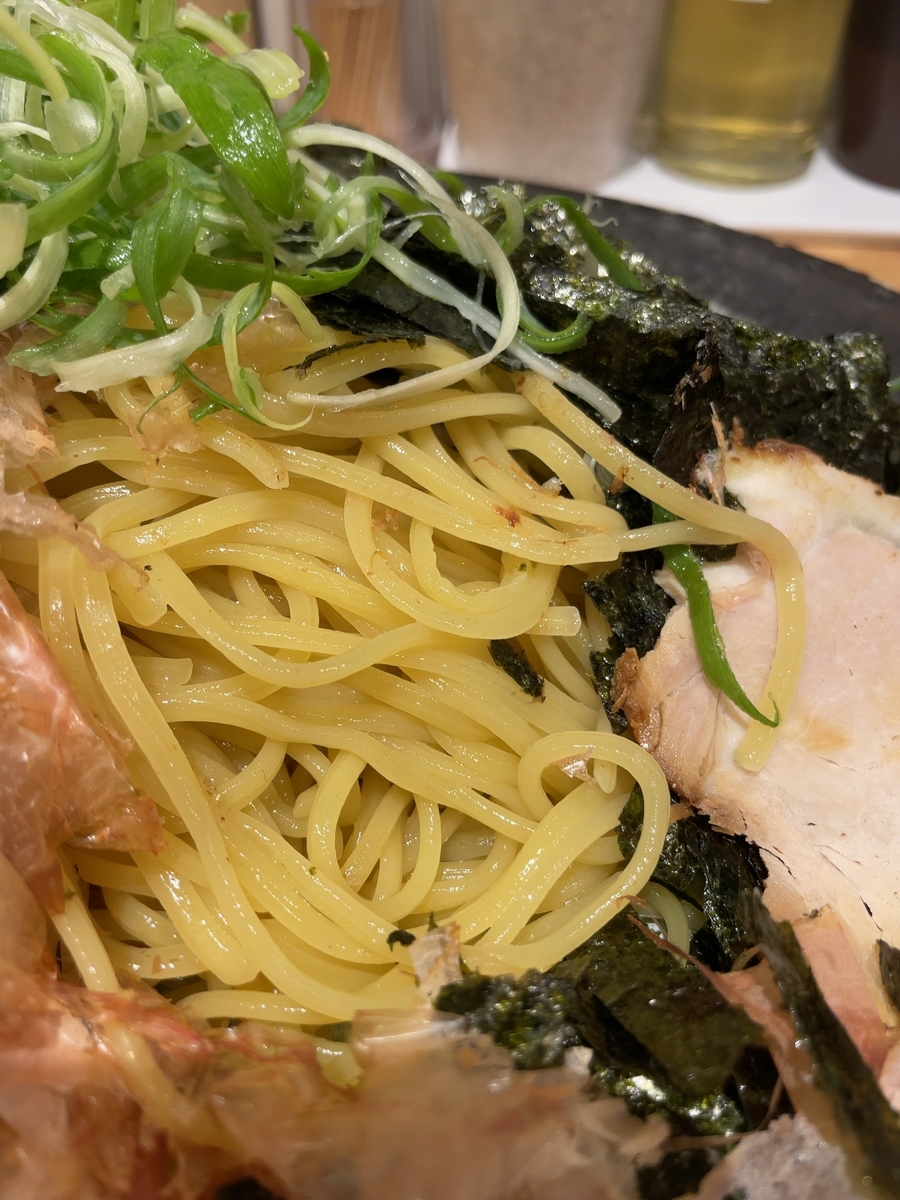 ツルツルで硬めの食感のこの麺がとても好きです。