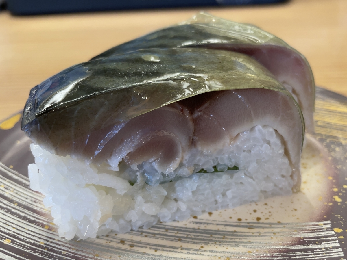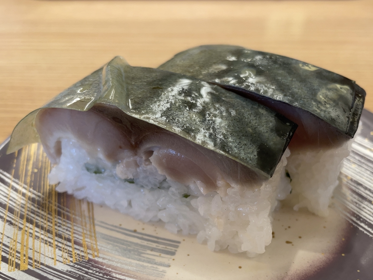 その下の鯖は肉厚で生々しい